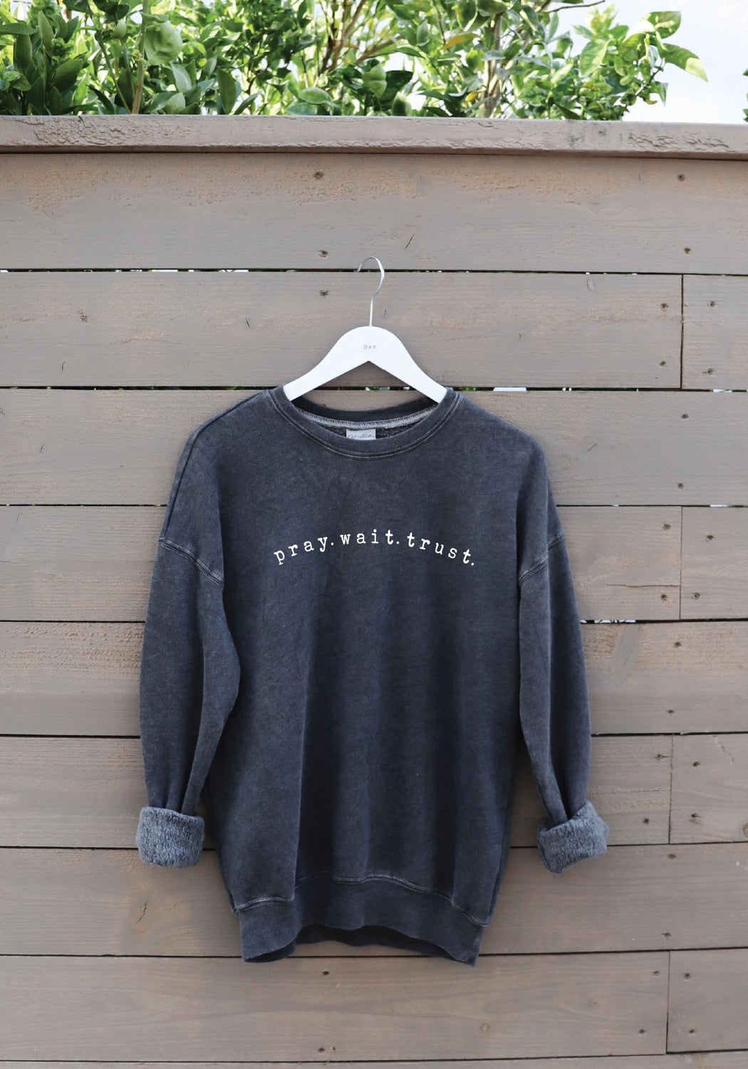 Embrace spiritual mindfulness with this thoughtfully designed sweatshirt featuring the affirming message "Pray Wait Trust." Crafted from premium comfort fabric, it serves as a daily reminder to cultivate patience and faith in life's journey. The understated typography creates a sophisticated aesthetic suitable for casual wear or layering. Perfect for those seeking to express their values through fashion, this piece combines quality construction with meaningful messaging.