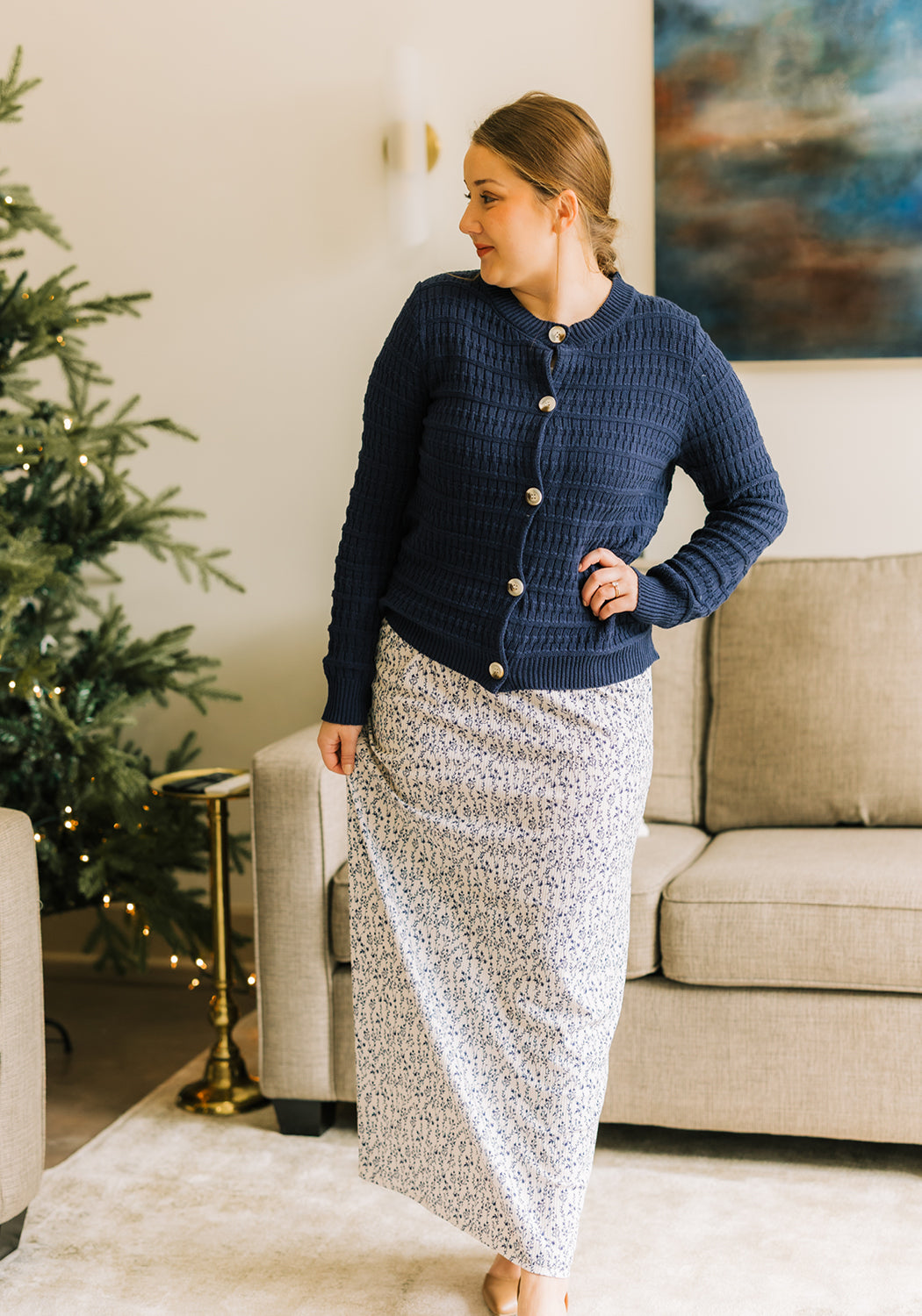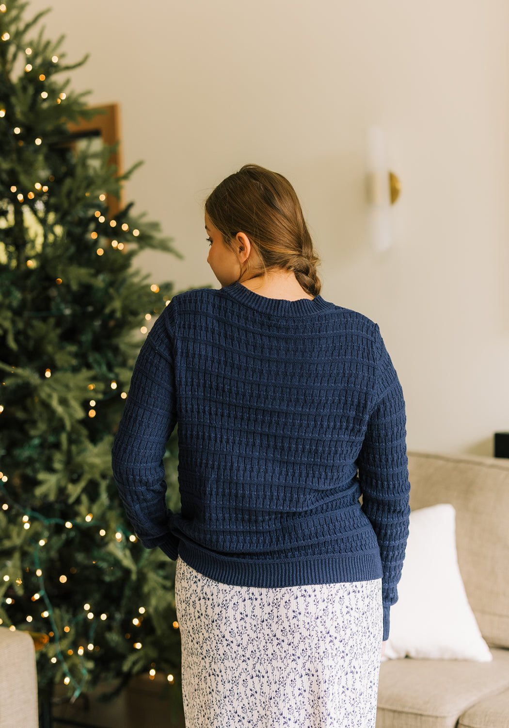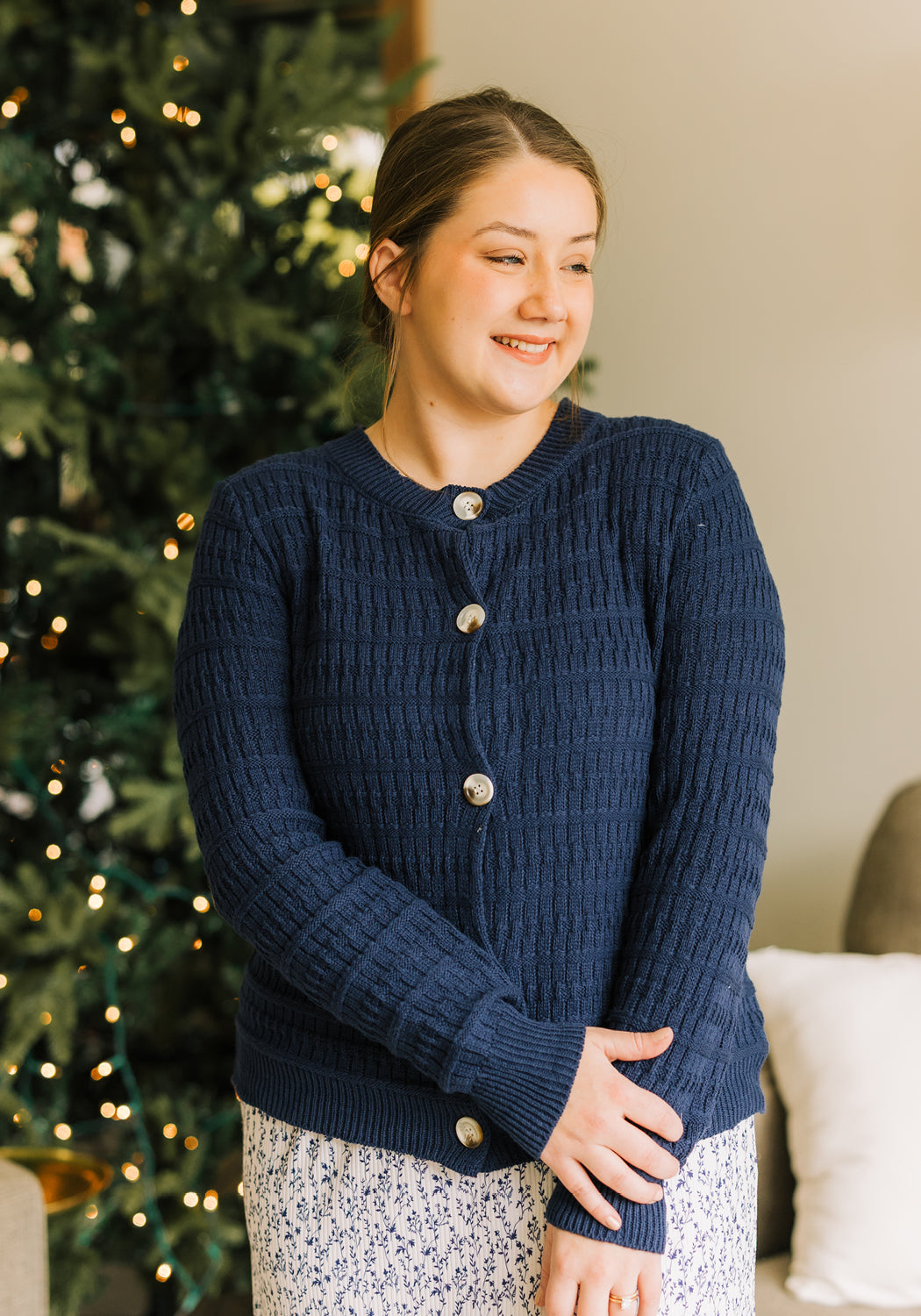 The 'Lily' Knitted Casual Cardigan with timeless beauty, featuring navy tones that feel both classic and fresh. Its soft knit and relaxed fit make it perfect for layering with denim skirts or flowy bottoms for everyday elegance. A sweater that carries the warmth of autumn days while remaining versatile enough for year-round wear.