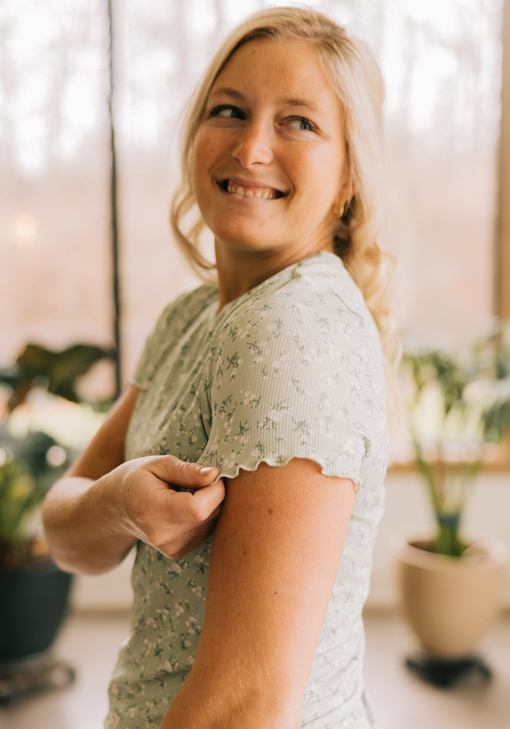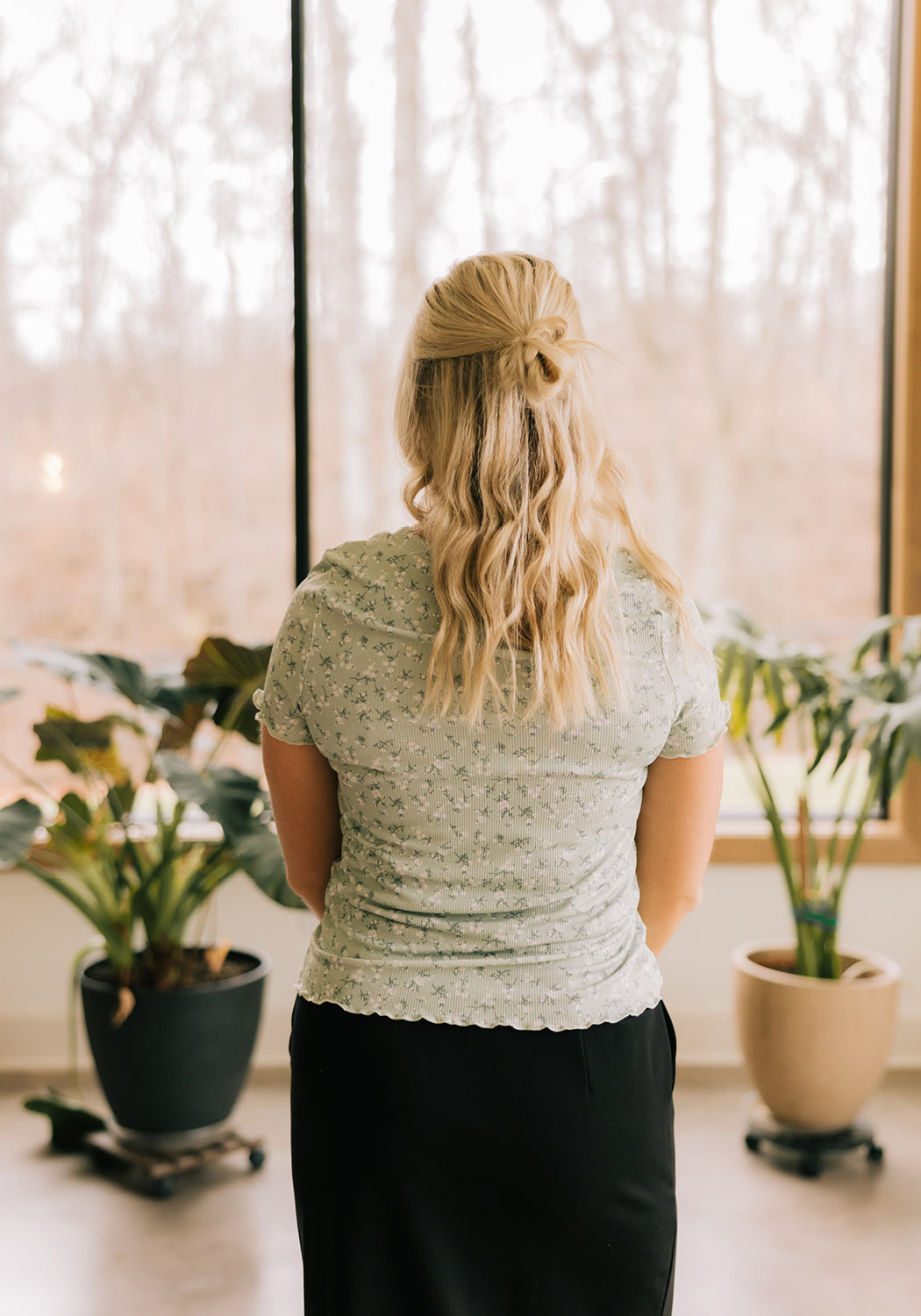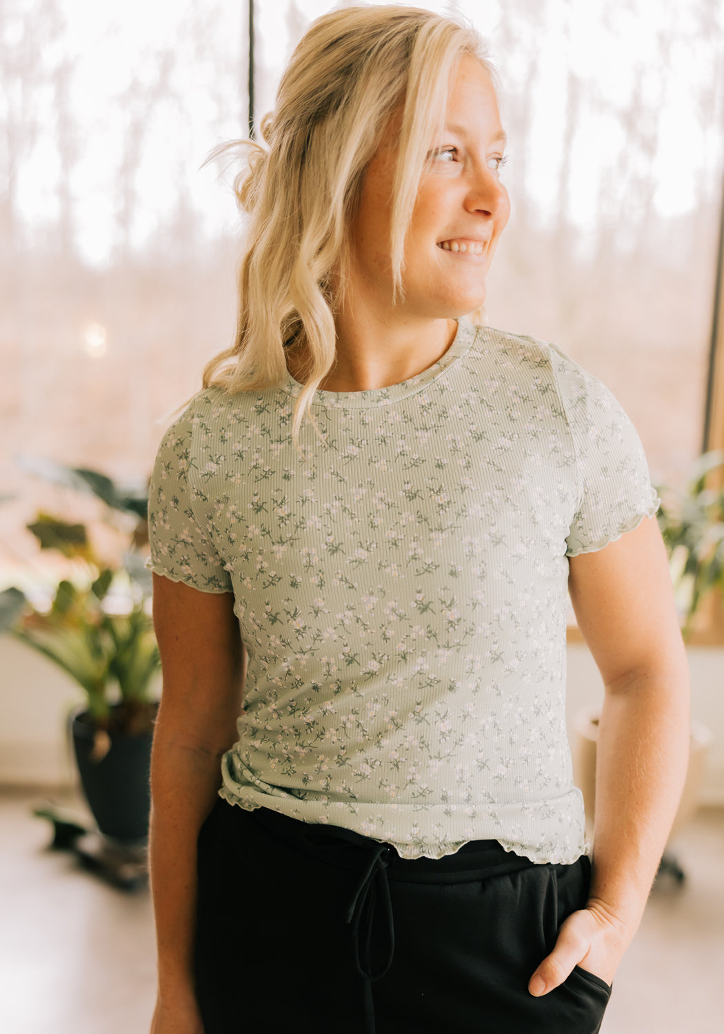 'Avery' Lettuce Edge Tee in Sagebrush