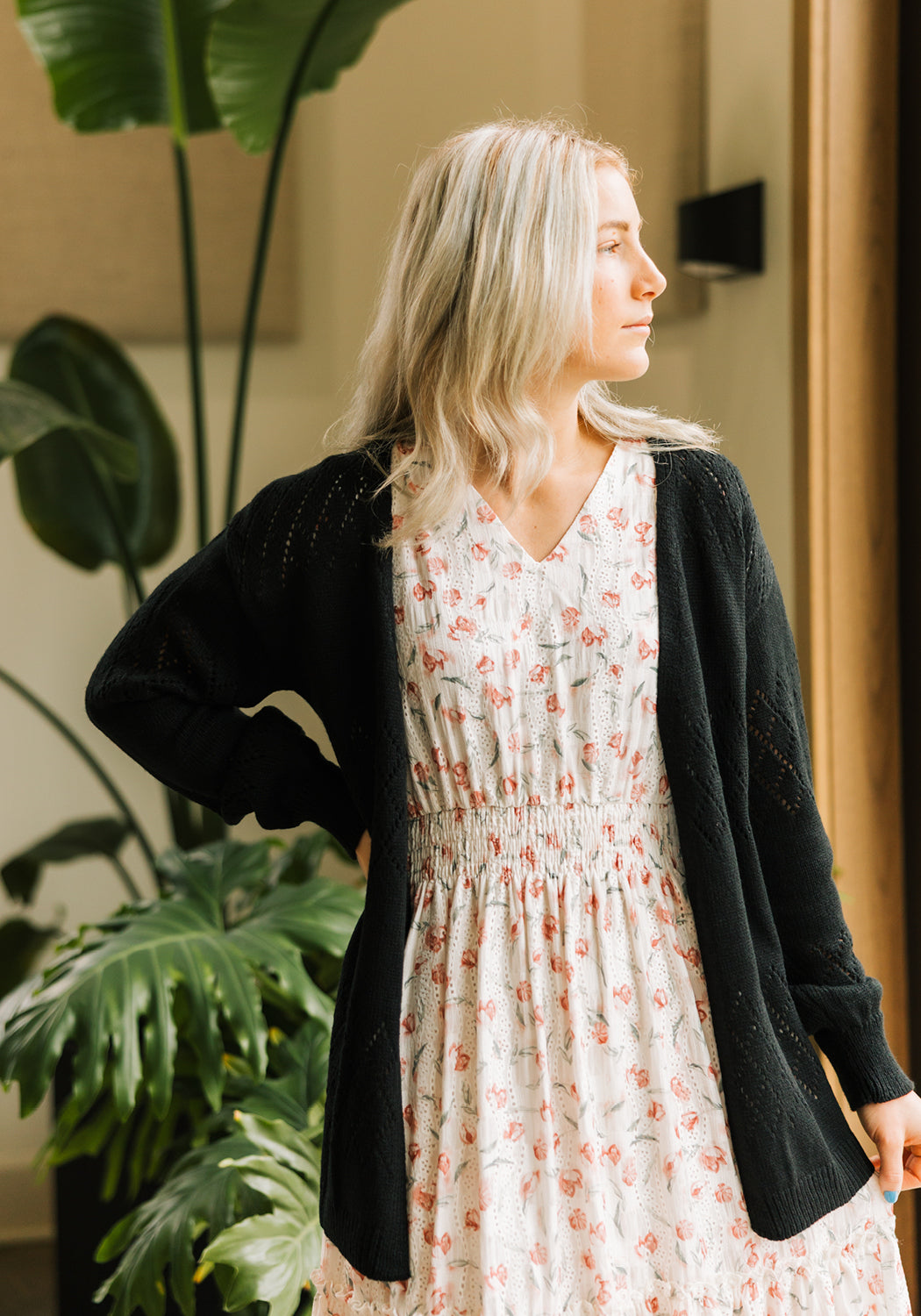 The 'Frances' Open Front Knit Cardigan wraps you in gentle texture and modest ease, offering a cozy layer that feels right at home in every season. Its open front drapes softly over flowy dresses or denim, creating a look that’s effortless. With its warm knit and relaxed sleeves, this piece invites simple moments of comfort while letting your natural beauty shine with grace.