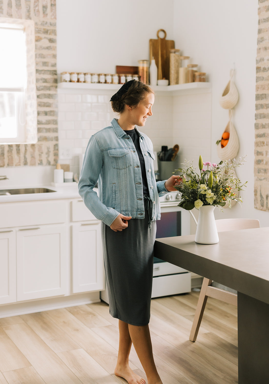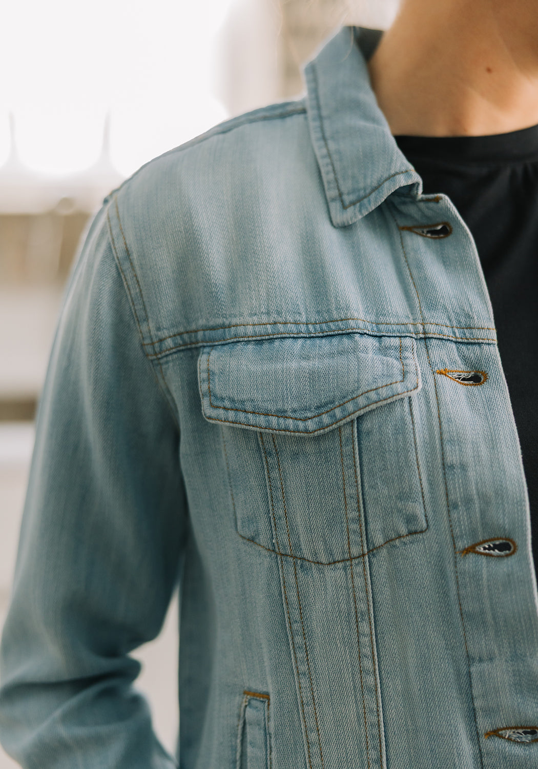 The 'Jackie' Soft Denim Jacket by Thread & Supply is a best selling knit shirt for a reason! Crafted from super soft fabric makes this shirt a must have for your wardrobe! Featuring button front closure and front pockets. Feel good in good threads, In our efforts to produce more sustainable items, we have started using Tencel Lyocell fibers derived from certified, sustainable wood sources.