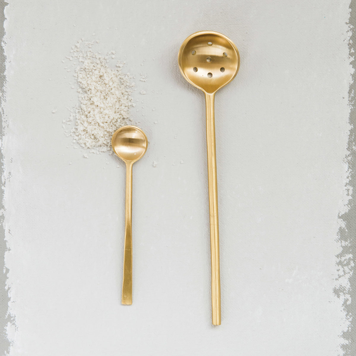 This long-handled kitchen utensil removes olives from jars or cans without any mess or briny fingers. Made from stainless steel with an antique brass finish, it will be right at home in any chic kitchen cabinet.
