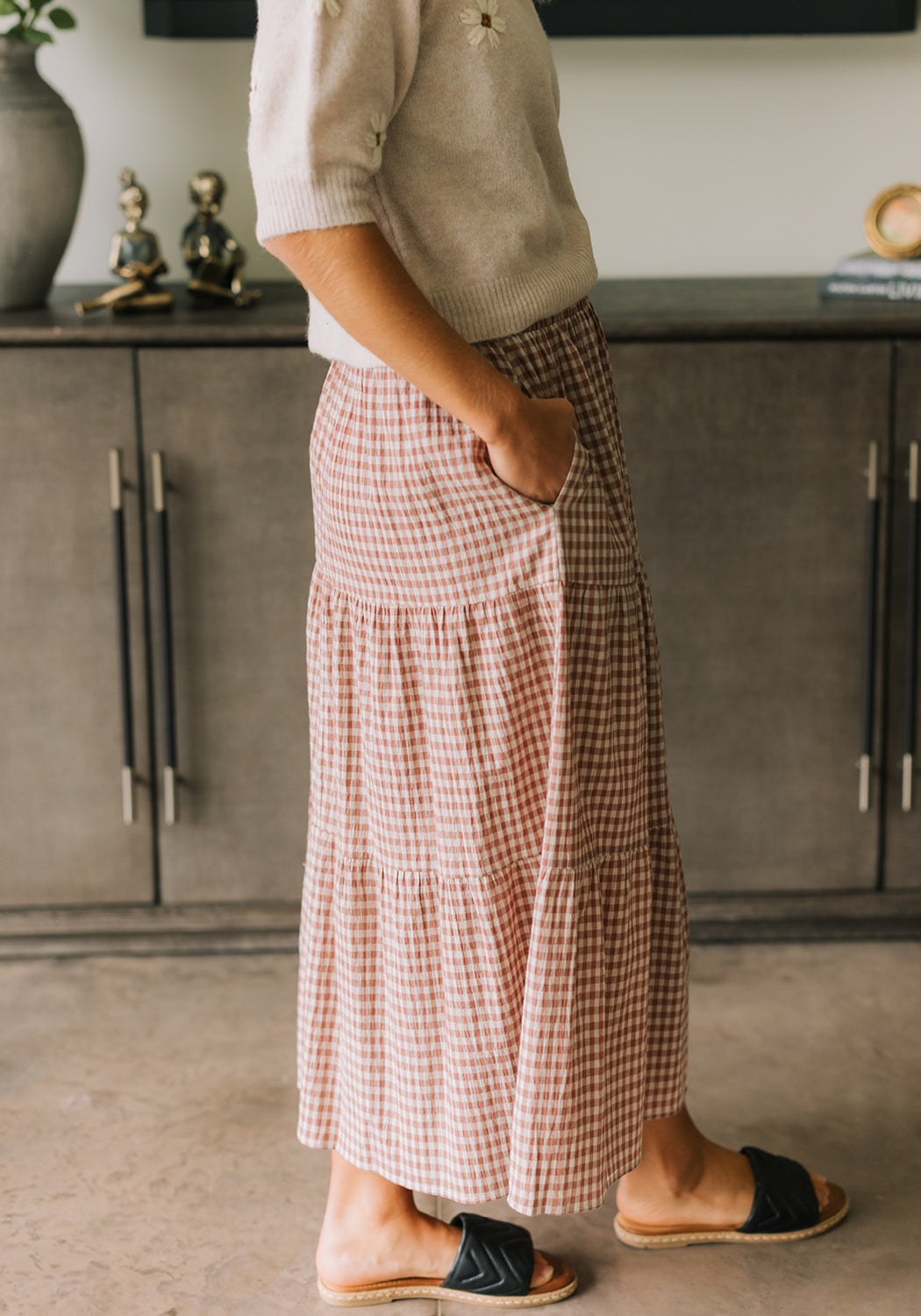 The 'Raine' Gingham Maxi Skirt is the definition of effortless style. With its modern beige-and-white gingham print and flattering straight silhouette, it’s made for year-round wear. Lightweight and comfortable with a flexible waistband, it transitions seamlessly from season to season. Perfectly polished yet easy to wear, it’s the versatile essential your wardrobe’s been waiting for.