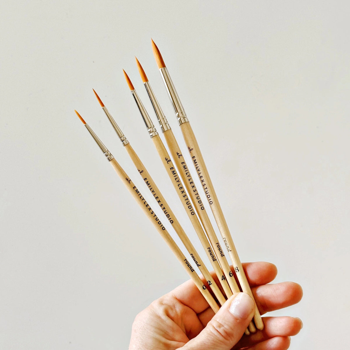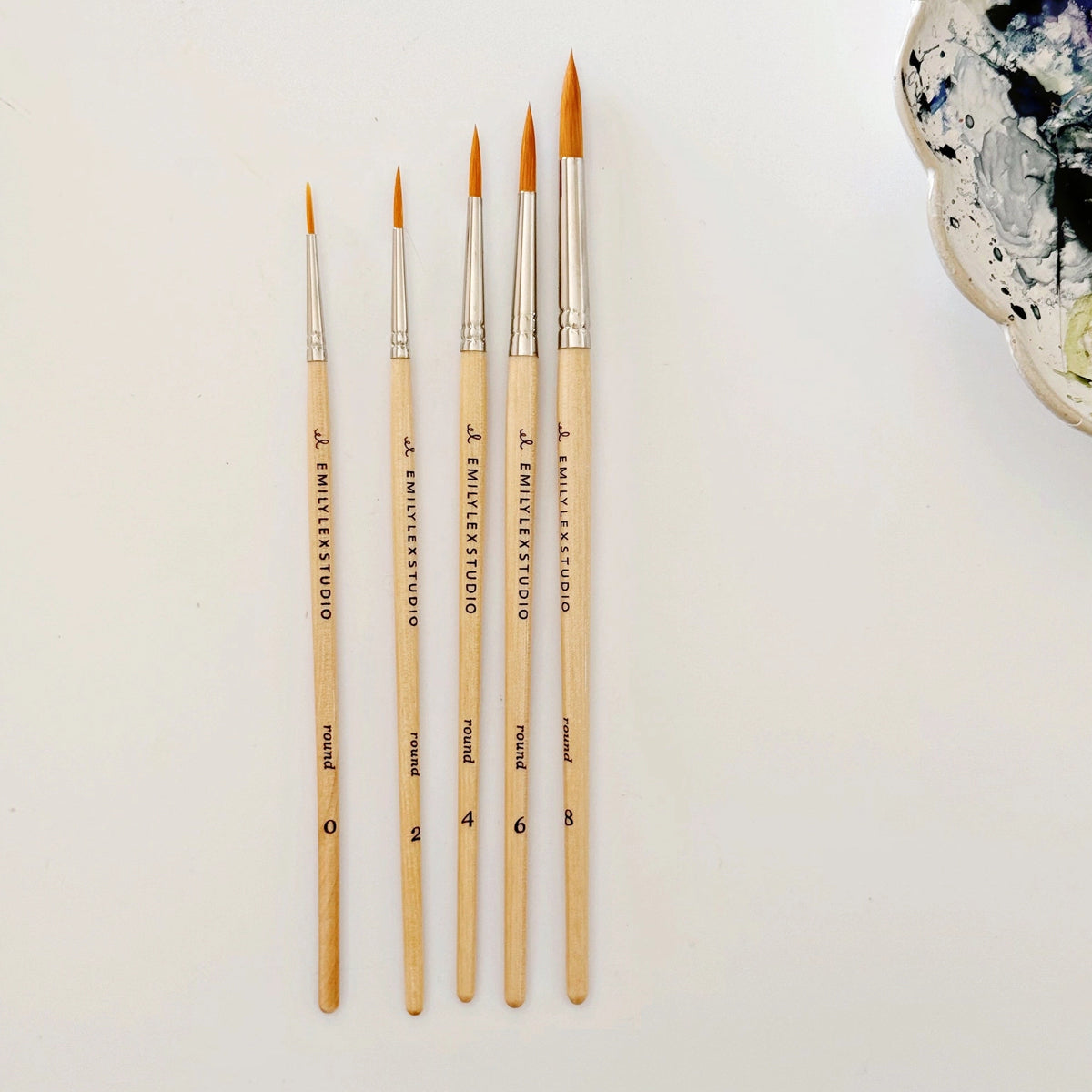 The perfect brushes for your watercolor painting. A variety of sizes will allow for all your painting needs. Sizes 8, 6, and 4 are excellent for the bulk of your paintings, and size 2 and 0 are great for those tiniest of marks. Be sure to rinse thoroughly and let dry flat to keep a nice point on the bristles.