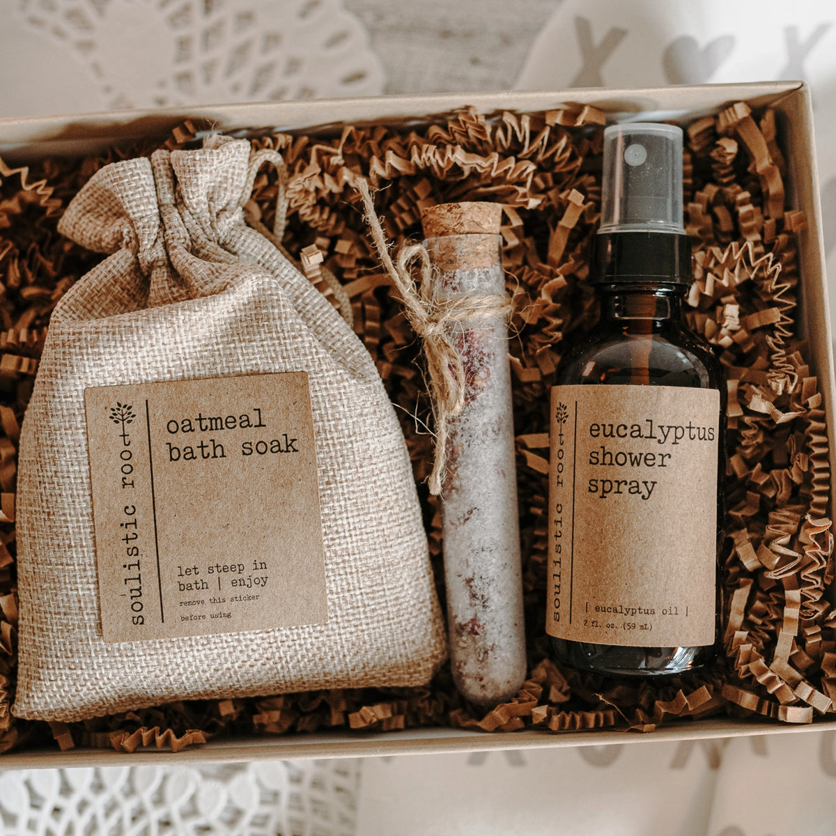 • Rose Oatmeal Soak Oatmeal has incredible healing properties, and when combined with the power of dried herbs creates the ultimate bath experience. Throw in the tub and let steep for a mess free oatmeal bath. This bath soak combines organic oatmeal and dried rose petals!