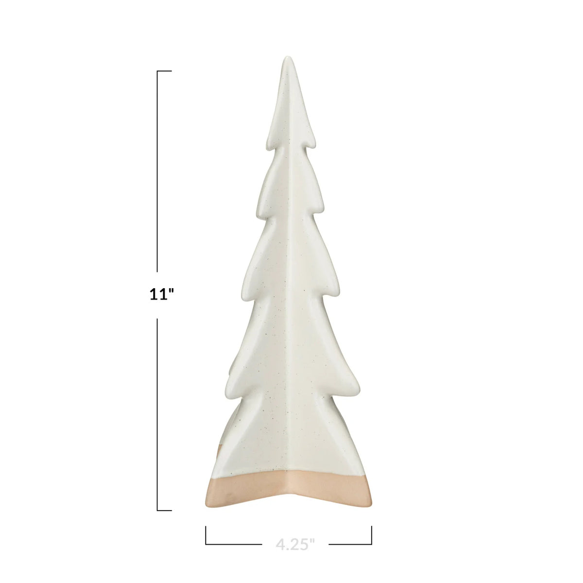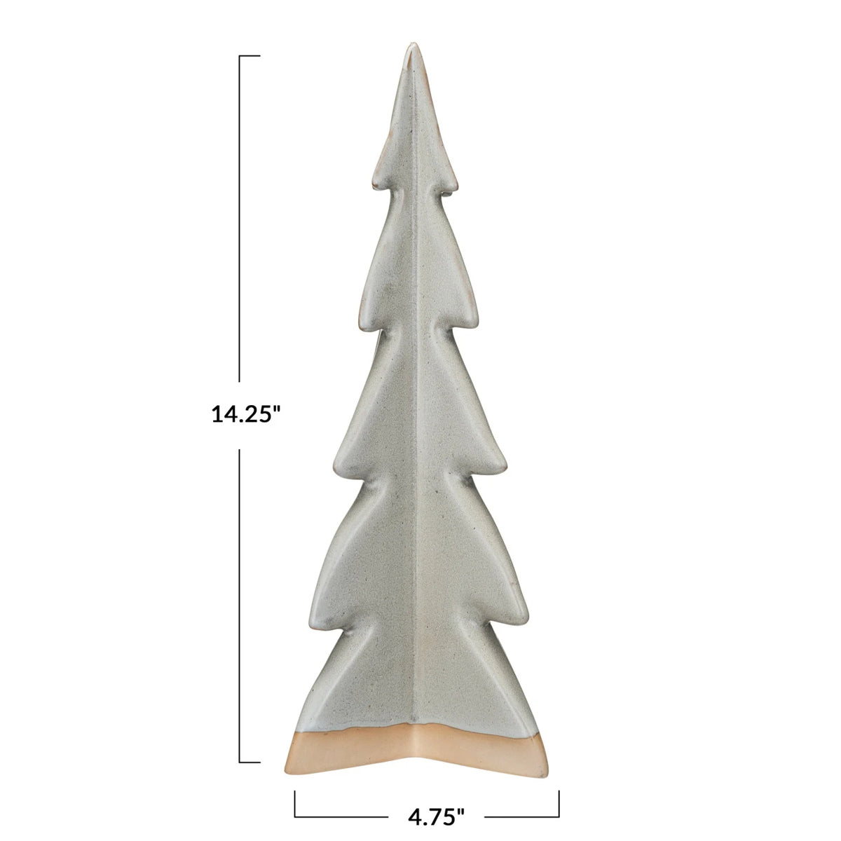 This cream decorative stoneware tree with reactive glaze is a beautiful and convenient way to decorate for the holidays. It features a decorative stoneware tree with a cream color and a reactive glaze that creates a unique pattern on each piece, making it a one-of-a-kind item. The tree has a smooth and glossy texture that is pleasant to touch and look at. The tree is ideal for displaying on a table, shelf, or mantel, where it can add a touch of sophistication and charm to any space.